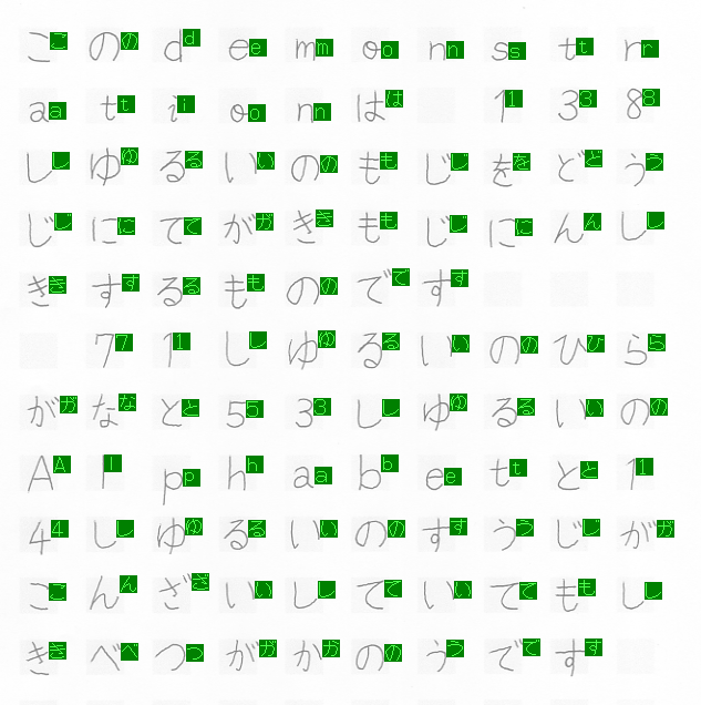 数字+ひらがな+アルファベットの手書き文字認識例